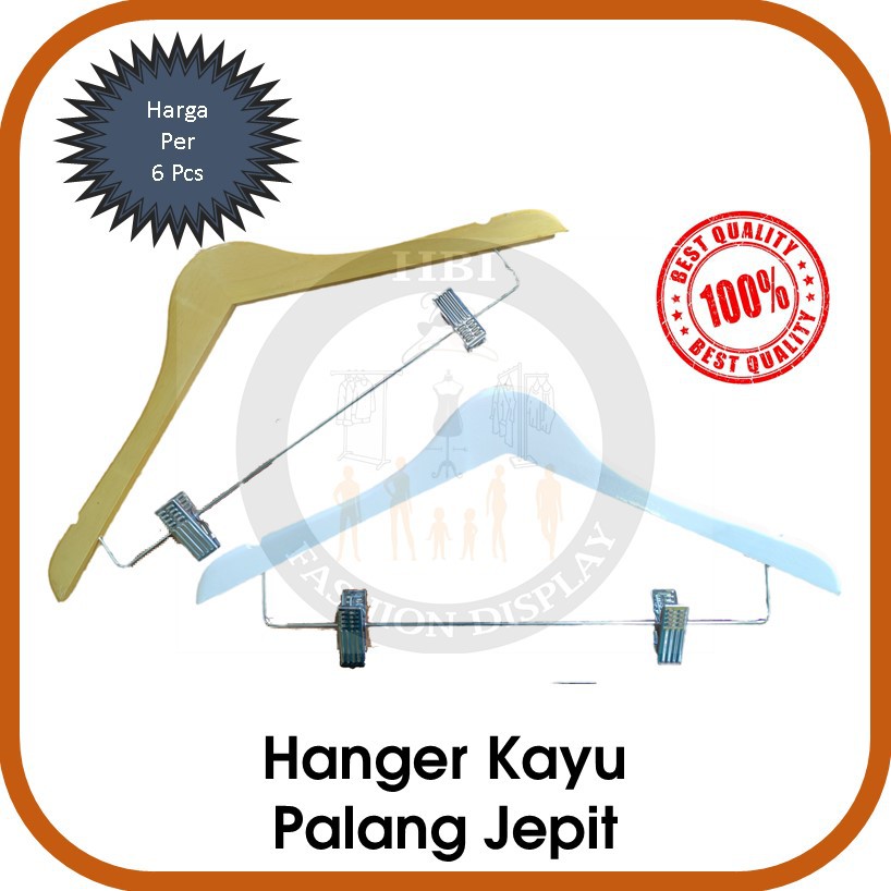 Name: Hanger Kayu Palang Jepit Besi Isi 6 Pcs / Gantungan Baju Palang Jepit