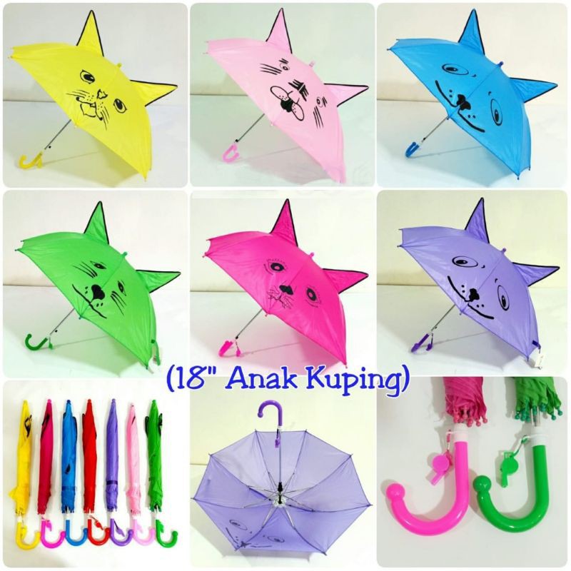 Detail Payung Payung Anak KupingJari-jari : 8Panjang Payung : 57,5cmDiameter Payung : 90cmPayung tongkat Anak Kuping lucuTersedia beberapa warnaBiru.merah.ungu.hijau.pink muda.pink tua.kuning#payunganak#payungku