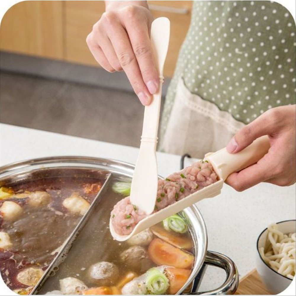 Alat ini untuk membantu Anda membuat bakso / bakwan dengan mudah dan cepat. Cacahan bakso tinggal Anda masukkan ke dalam silinder, sementara sekop kecil dipergunakan untuk memotong bahan bakso di dalam silinder sesuai ukuran dan hasil potongan pun langsung meluncur masuk ke dalam panci. Proses memasak lebih cepat, tangan lebih bersih, dan yang terpenting, ukuran masakan lebih konsisten.Bahan : PlastikUkuran : 25 cm x 4 cmKeterangan : 1 Set terdiri dari tempat bakso dan senBahan : Food Grade PPSekop ini sesuai untuk membuat bakso / bakwan berbentuk pipih / gepeng, dan bukan yang berbentuk bulat