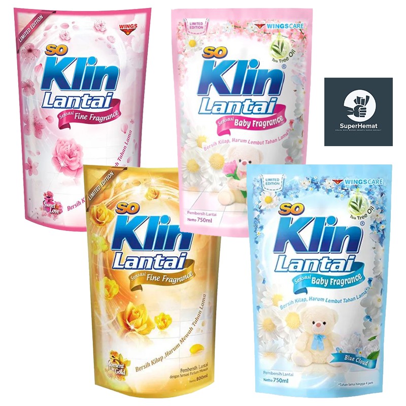 So Klin Lantai - Sensasi Baby & Fine Fragrance - Limited Edition - Refill 800mlLantai Rumah Bersih & WangiRumah yang bersih merupakan dambaan para ibu-ibu rumah tangga, apalagi bebas dari kuman dan bakteri. Oleh karena itu, So Klin Lantai Fine Fragrance pembersih lantai hadir untuk membantu dan menjaga rumah Anda agar tetap bersih. So Klin Pembersih Lantai ini merupakan cairan pembersih lantai yang sangat efektif digunakan untuk membersihkan lantai dari noda membandel dan bau tidak sedap. Selain itu, cairan pembersih lantai So Klin tersebut juga memberikan aroma therapy yang dapat menjadikan ruangan didalam rumah Anda menjadi wangi. Dengan begitu, lantai menjadi lebih berkilau, bebas dari bakteri dan harum sehingga kesehatan dan kenyaman didalam rumah pun dapat terjaga dengan b