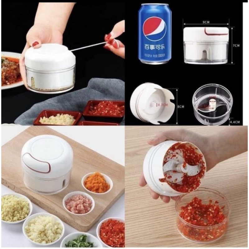 Alat ini sangat cocok untuk melengkapi perlengkapan dapur Anda. Dengan alat ini, Anda tidak perlu repot lagi ketika menumbuk bawang, memotong sayuran, mencincang daging, dll. Alat ini memakai sistem manual sehingga menghemat listrik. Dilengkapi dengan pisau yang tajam.Daging dan sayuran kini dapat Anda cincang dengan sangat mudah, tidak perlu lagi menggunakan pisau yang melelahkan dan memakan waktu lama. Anda hanya perlu menarik tali berulang kali sehingga pisau didalam berputar dan mencacah daging, sayuran, bawang, dll.gilingan manual ini sangat mudah untuk Anda bersihkan setelah pemakaian, sehingga tidak ada sisa-sisa bekas pemotongan.kapasitas 170 mlsize : 8.5 x 7 CMBarang tidak bergaransi#speedycoopermini#blandermanual#blandermini#blander
