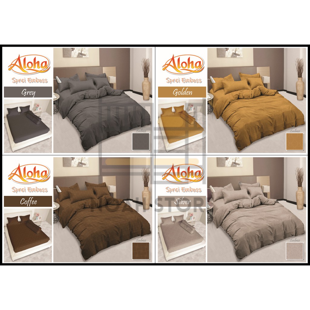Name: Sprei Polos Emboss Aloha Bantal 4 (b4) Uk. King (180x200) Warna Gray, Golden, Coffee, Silver